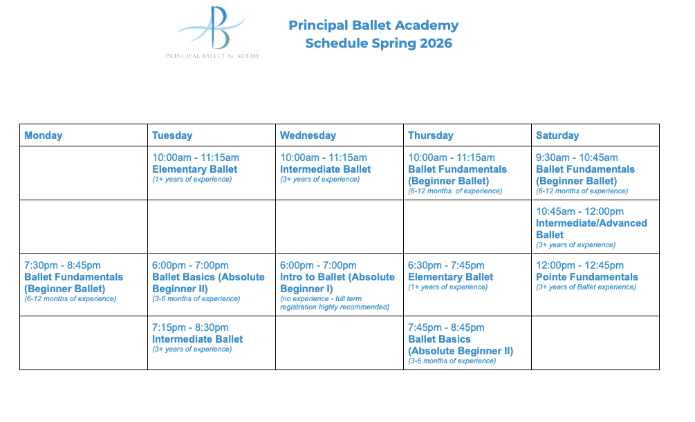 Schedule updated January 25,2026. Schedule subject to change, pending enrolment and interest. Additional classes may be added.